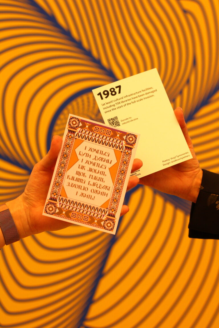 Участь України відбулася під гаслом “Fragility of existence” (“Крихкість існування”). Концепт дизайну українського стенда належить Альоні Соломадіній. На ярмарку у Варшаві УІК також поширював листівки, розроблені проєктом Odesa City Letters: про загиблих на війні письменників, про зруйновані об’єкти культурної інфраструктури та про кількість депортованих Росією українських дітей.