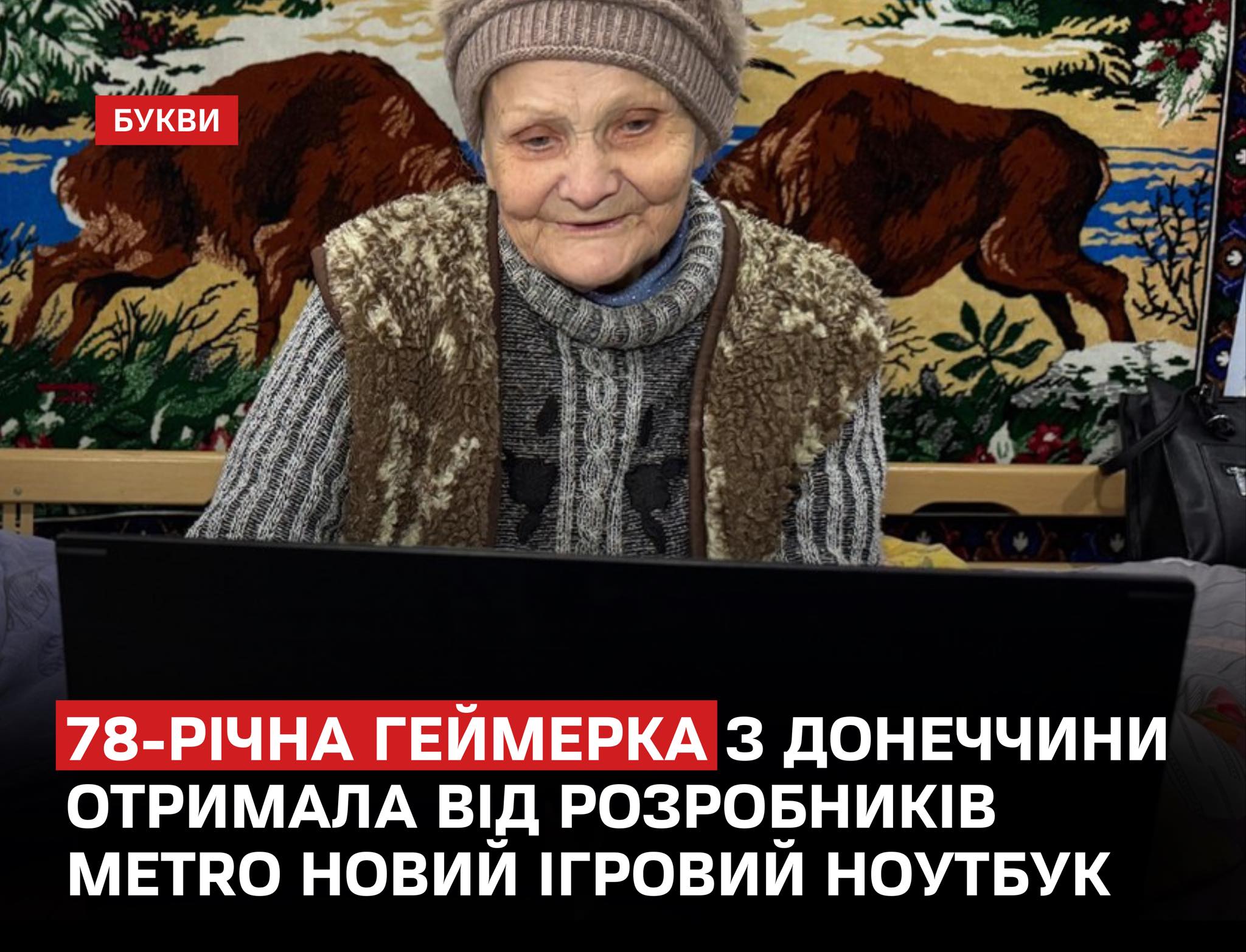 78-річна геймерка з Донеччини отримала ноутбук від українських розробників гри Metro