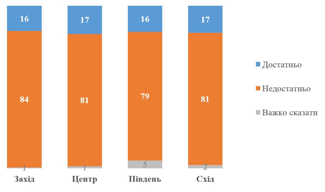 У всіх регіонах України більшість населення вважають, що докладені Україною зусилля були недостатніми.