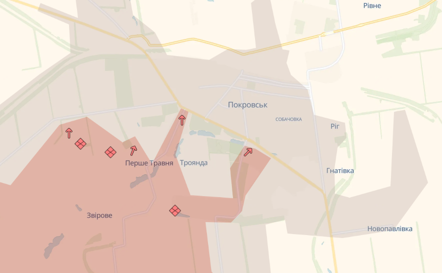 За даними OSINT-проєкту DeepState, який відстежує ситуацію на полі бою, російські окупанти просунулися в місті Покровськ на Донеччині та трьох населених пунктах Запорізької області.