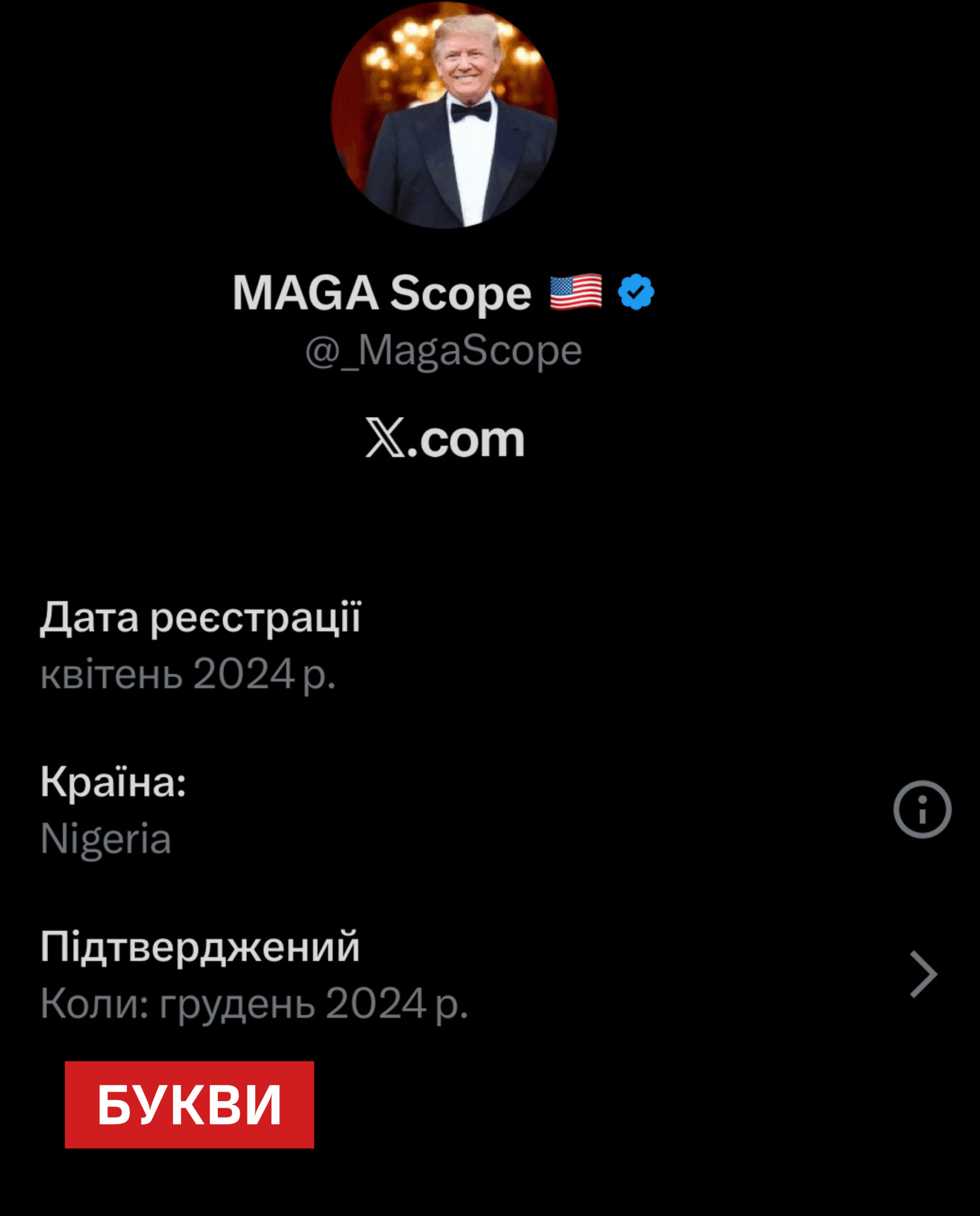 “MAGA Scope” (понад 51 000 підписників) – ведеться з Нігерії;