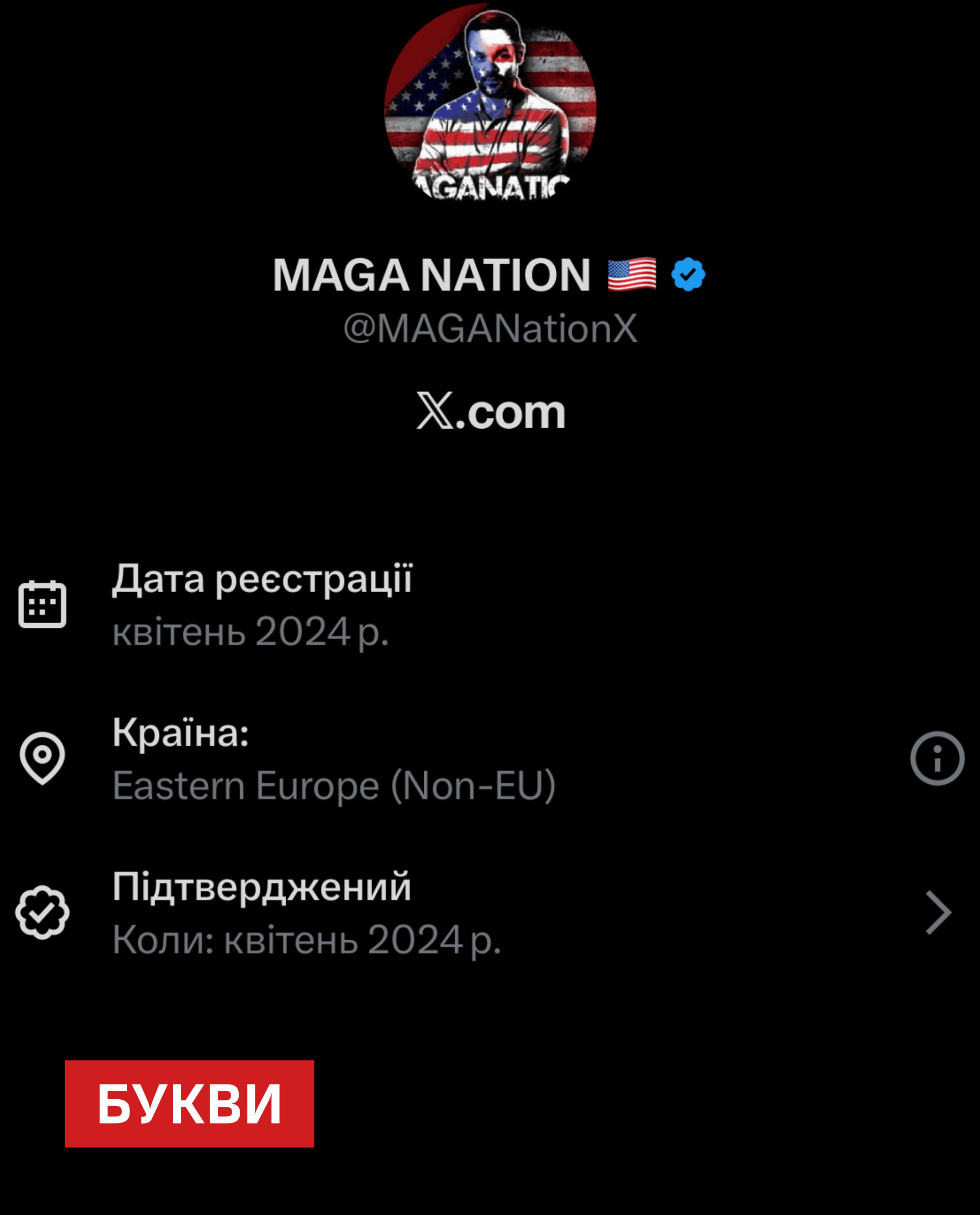 акаунт “MAGA NATION” із понад 392 000 підписників – базується у Східній Європі;