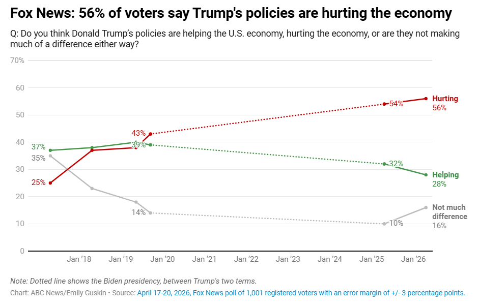 Дослідження Fox News показало, що виборці з перевагою 2 до 1 вважають дії президента шкідливими для національного господарства.
