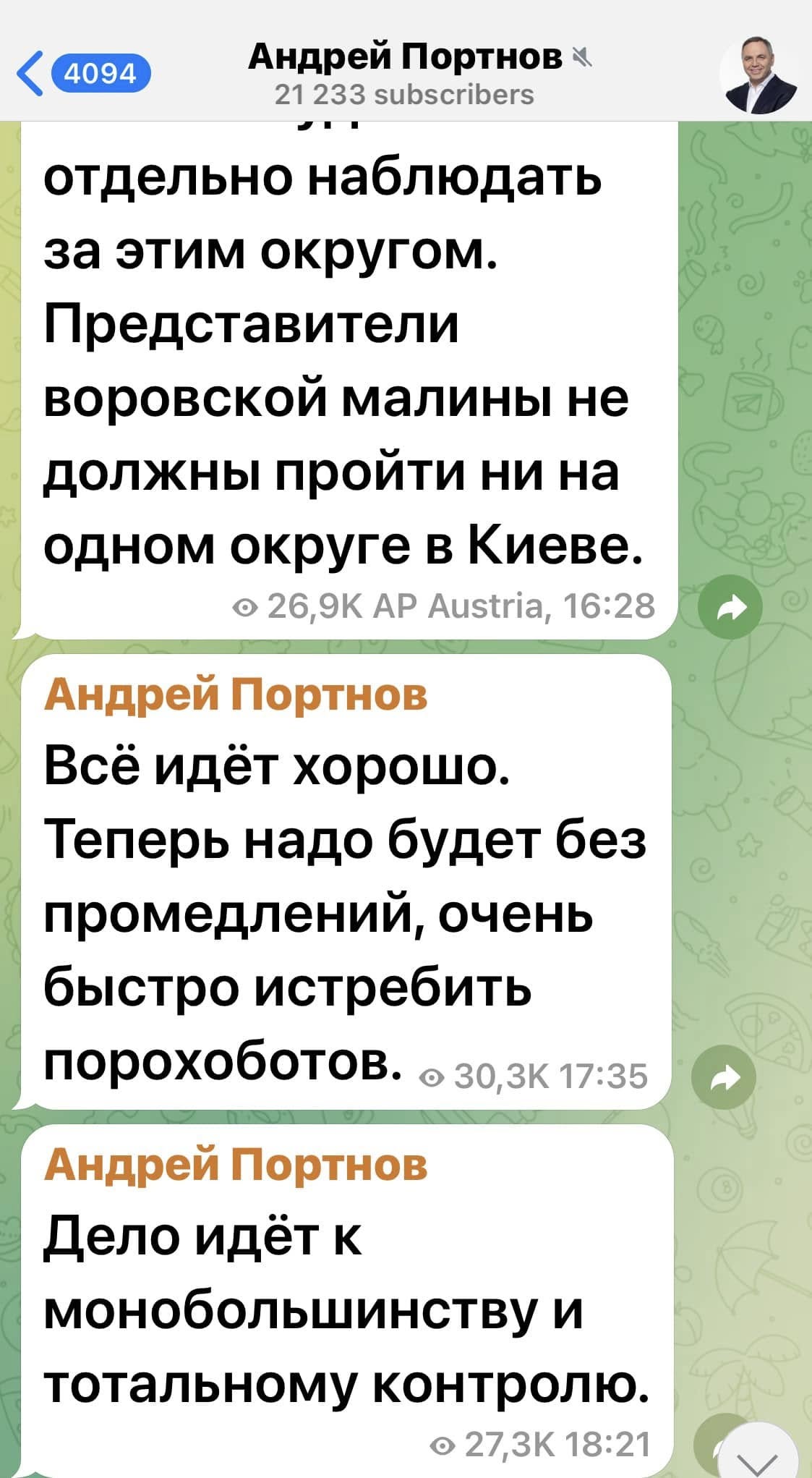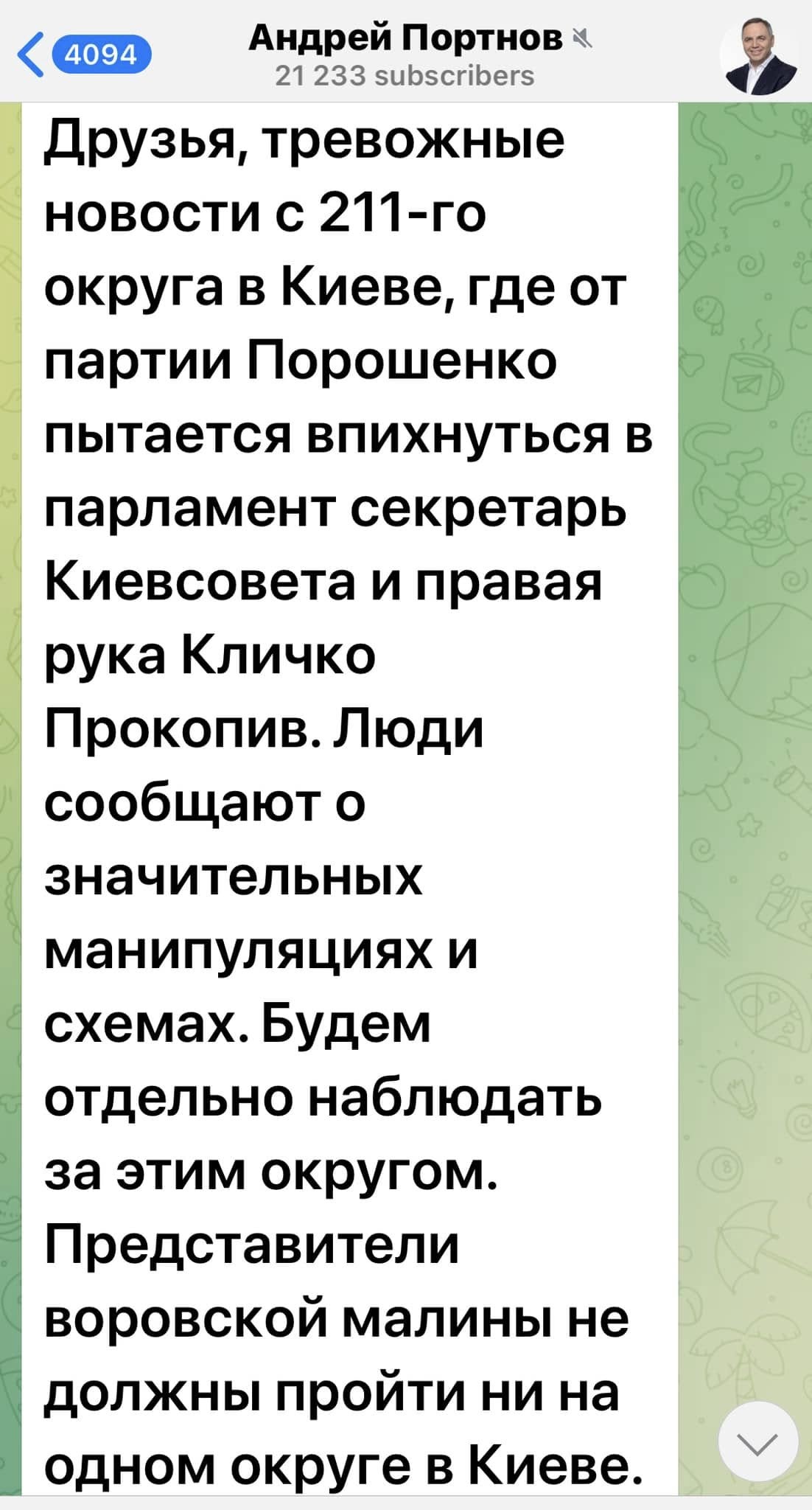 Сюмар не стала розписувати, що судять Прокопіва за справу, по якій він видавав дозволи на перетин кордону водіям вантажівок, що возили пальне для забезпечення Києва на початку повномасштабного вторгнення, водночас надала скріни самого Портнова, де він ще в 2019 році переймався, аби до парламенту не пройшли “ЄС” та сам Прокопів. Як наголосила нардепка, це “показово”.