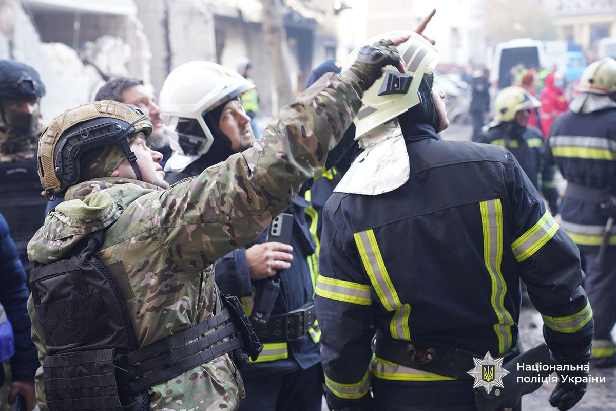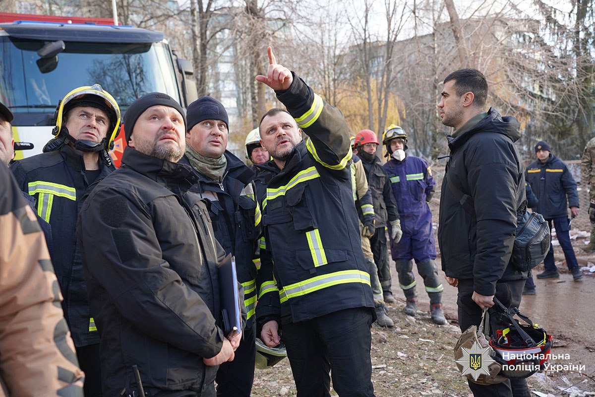 На місці удару міністр внутрішніх справ Ігор Клименко визначив конкретні завдання поліціянтам, та іншим екстреним службам, котрі займаються ліквідацією наслідків ворожої атаки.