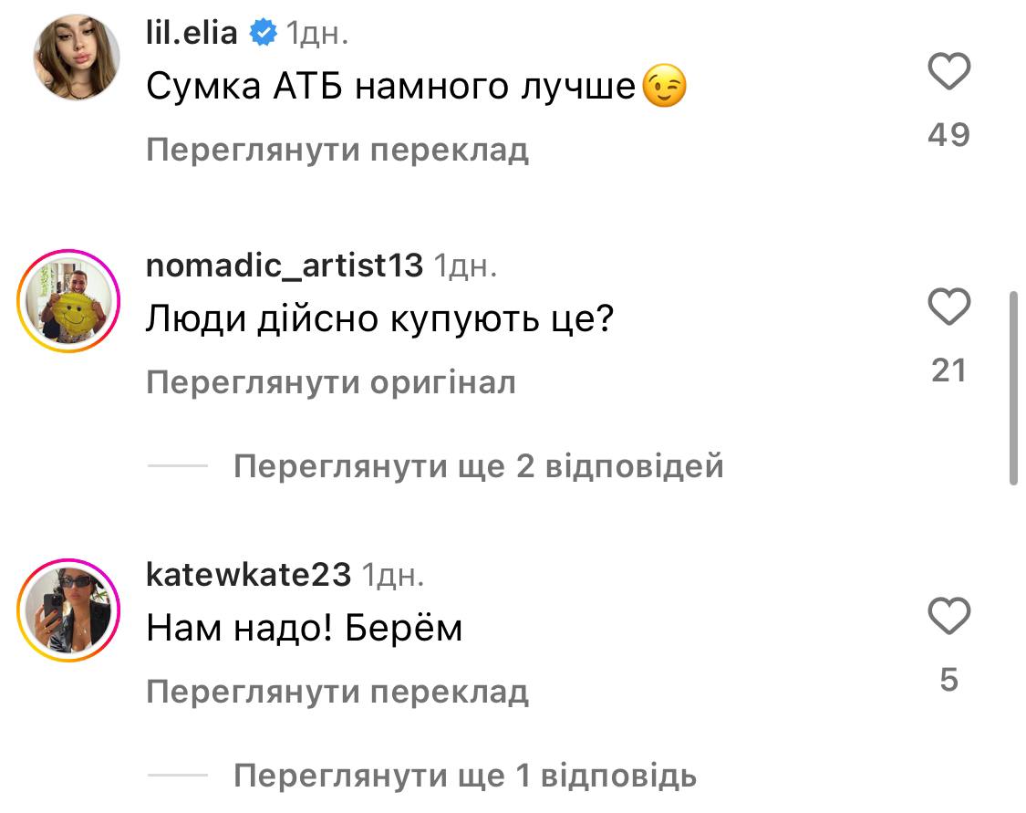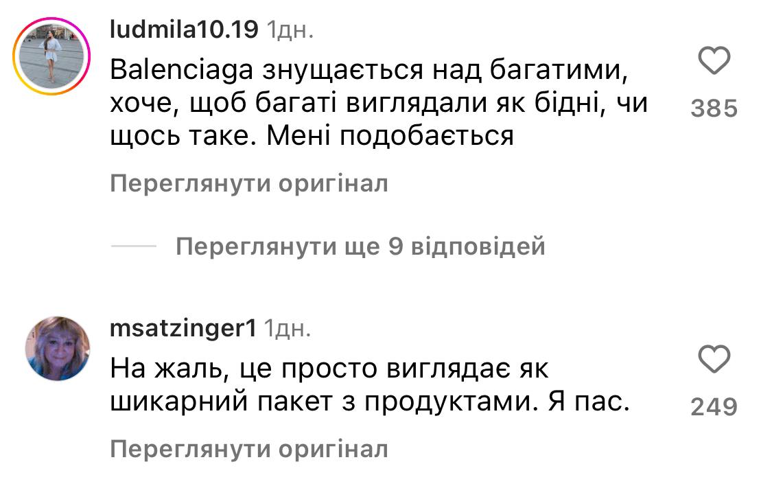 Користувачі розкритикували новинку й в коментарях під дописом компанії зазначили, що сумка-пакет від Balenciaga за майже $3 000 схожа до звичайного пакета з супермаркету, який можна придбати за $1,5.
