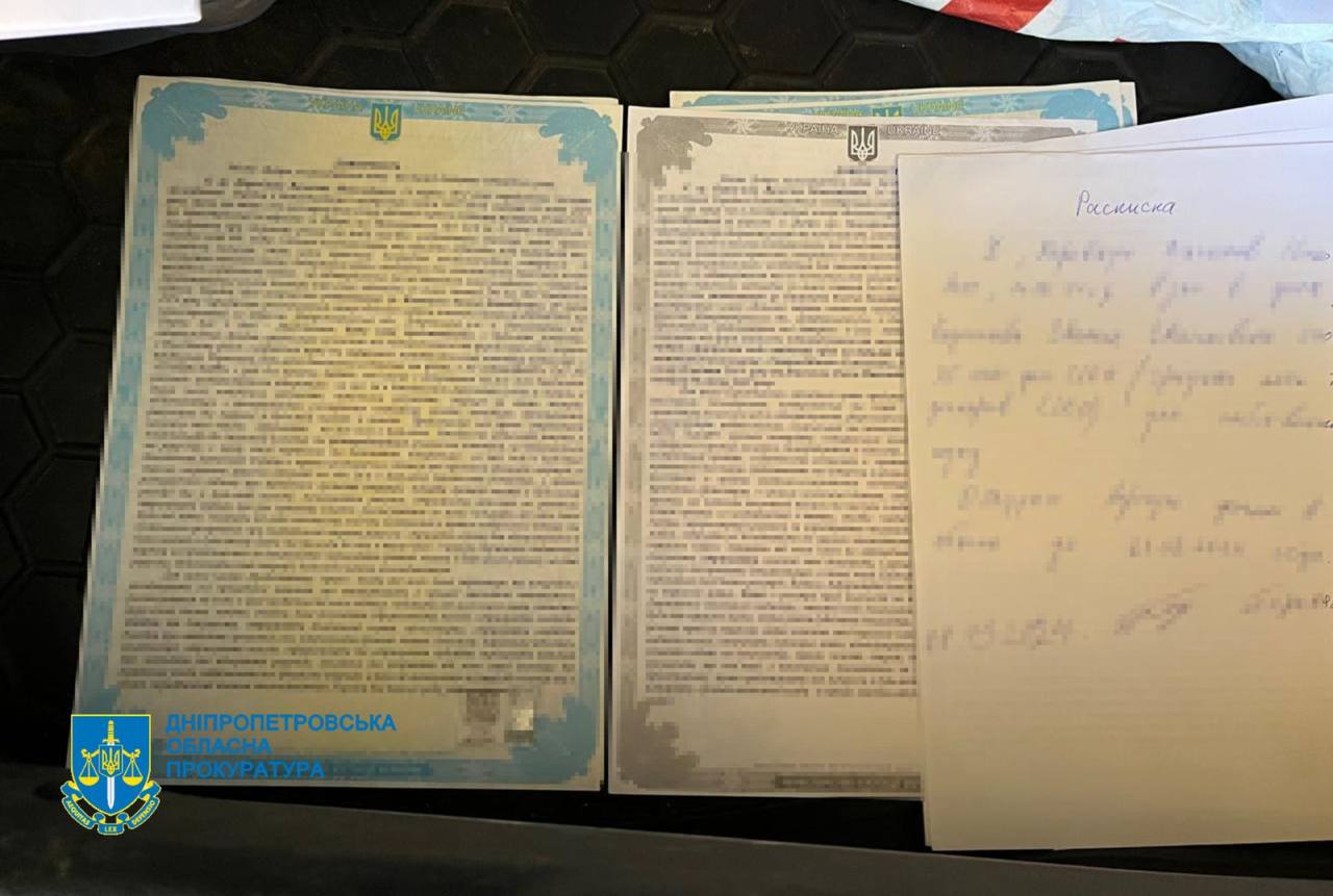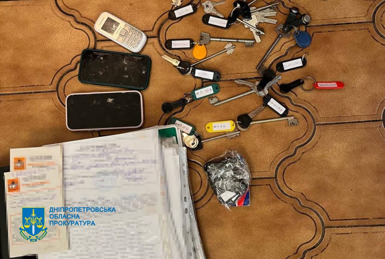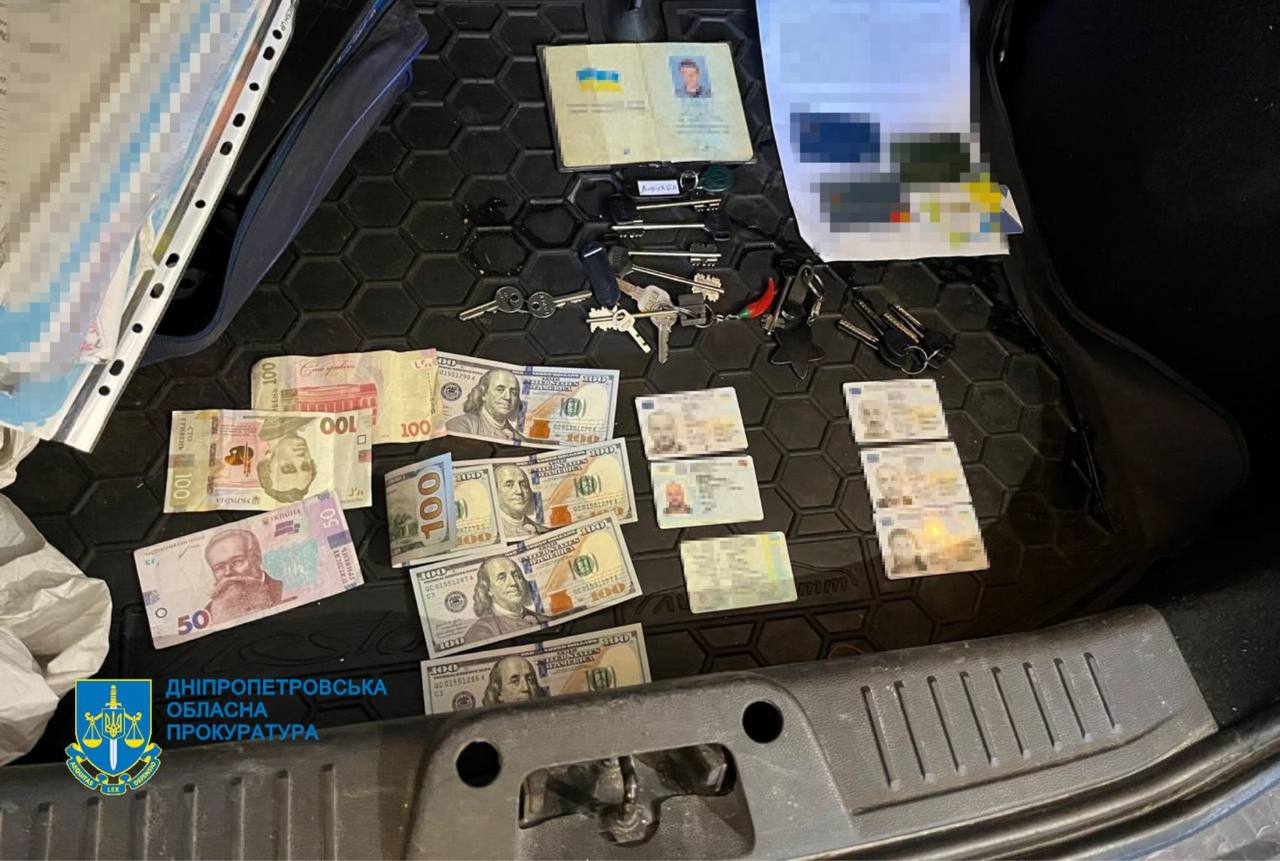 Під час обшуків у підозрюваних вилучили документи, мобільні телефони, банківські картки, гроші, ключі від квартир, печатки та чорнові записи.