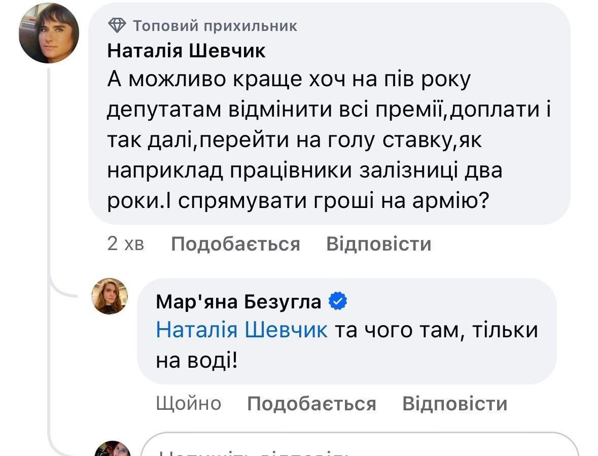 Такий коментар також викликав негативну реакцію користувачів. Спершу нардепка намагалась віджартуватись та відповідала на коментарі, проте через годину й 20 хв видалила допис.