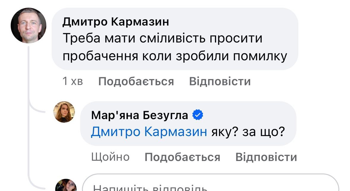 - Скрін коментарів до допису Безуглої в Facebook