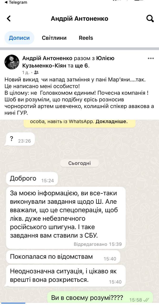 На сторінці у Facebook Антоненко опублікував частину приватної переписки з нардепкою.