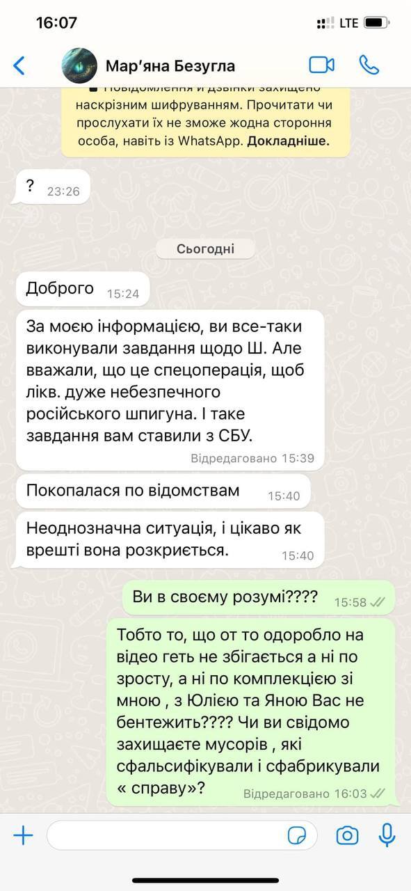 Він також поцікавився у нардепки, чи вона справді вважає, що людину на відео, котра геть не збігається ні за комплекцією, ні за зростом, можна ототожнити з ним. Зауваживши, що можливо Безугла свідомо захищає тих, хто сфальшував справу.