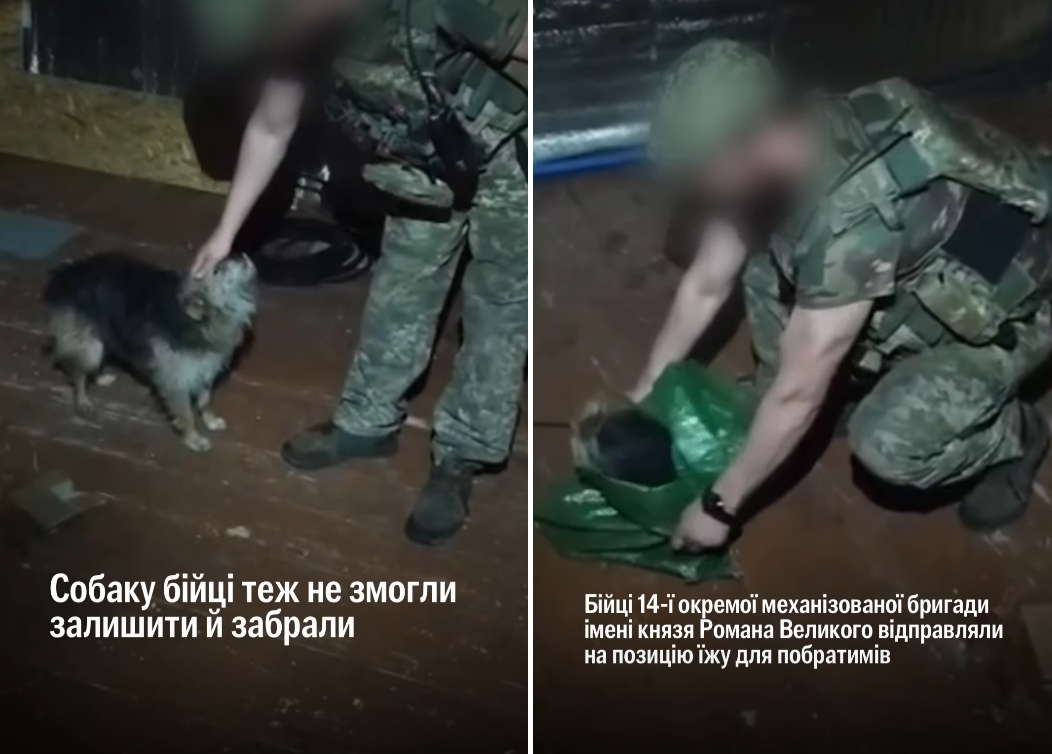 “Бійці 14-ї окремої механізованої бригади імені князя Романа Великого відправляли на позицію їжу для побратимів. Дрон, який ніс харчі, назад повернувся з пасажирами – котом і собакою”, – повідомили в UAnimals.