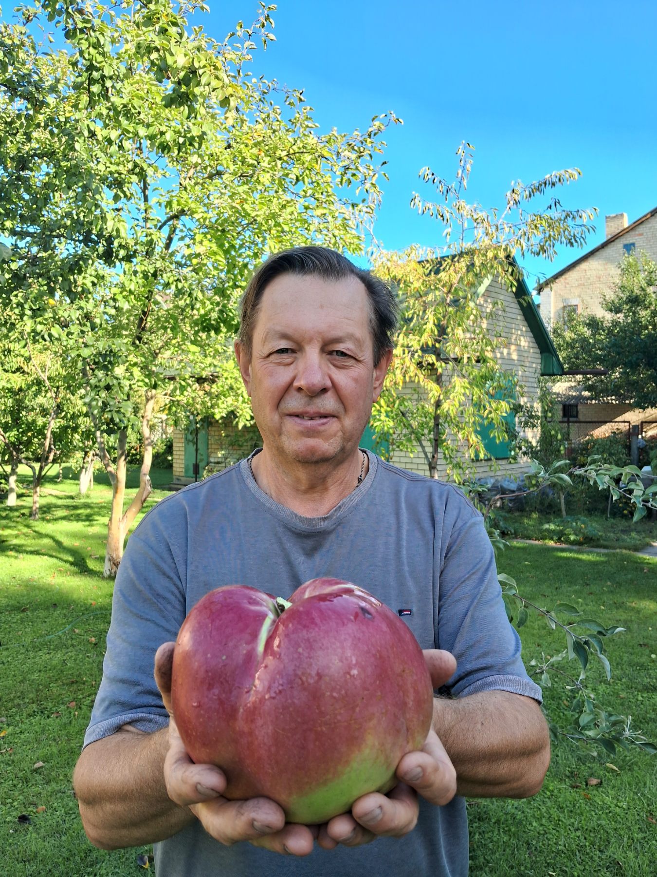 Киянин Юрій Кожем’якін виростив найбільше яблуко в Україні – вагою в 1 кілограм 281 грам. Результат роботи садівника внесли до Національного реєстру рекордів у категорію “Жива природа”