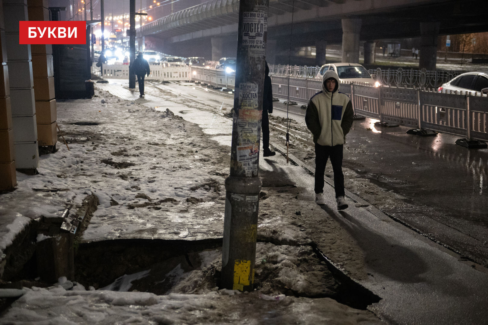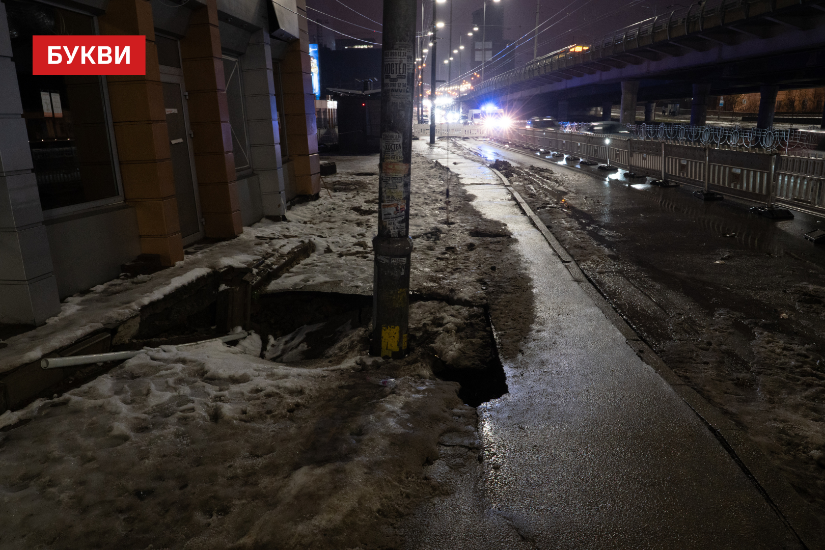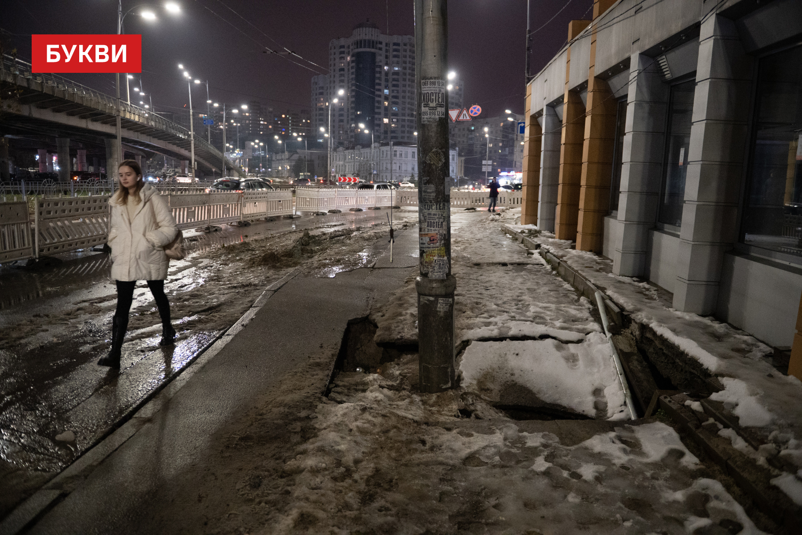 Біля метро Деміївська у Києві почав просідати асфальт – фоторепортаж