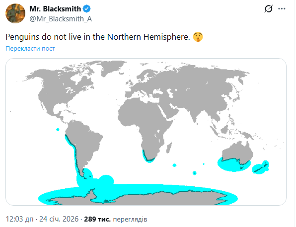 “Пінгвіни не живуть у Північній півкулі”