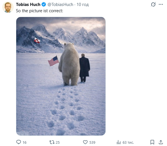 Офіційний акаунт Білого дому в соцмережі X опублікував згенероване штучним інтелектом зображення президента США Дональда Трампа і пінгвіна у Гренландії. Це викликало насмішки, адже пінгвіни на острові не водяться.