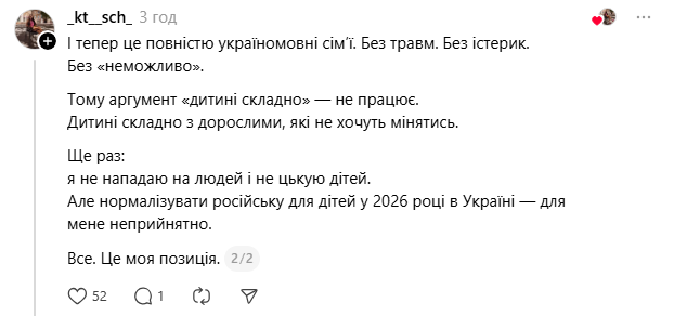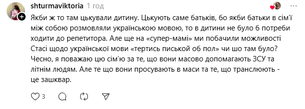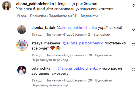 “Дитина 4 років не може миттєво перейти на іншу мову це природний процес“, – пише в коментарях блогерка.