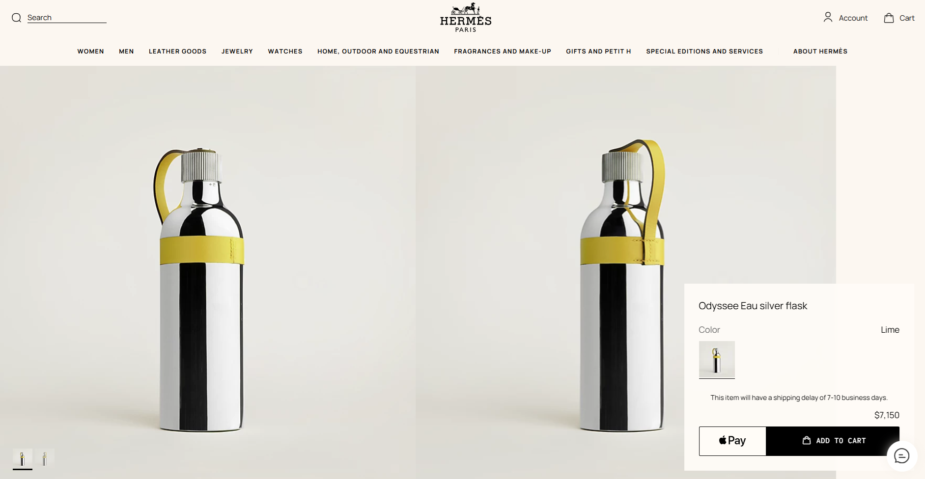 Бренд Hermès представив срібну флягу Odyssée Eau вартістю $7150