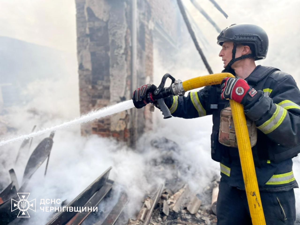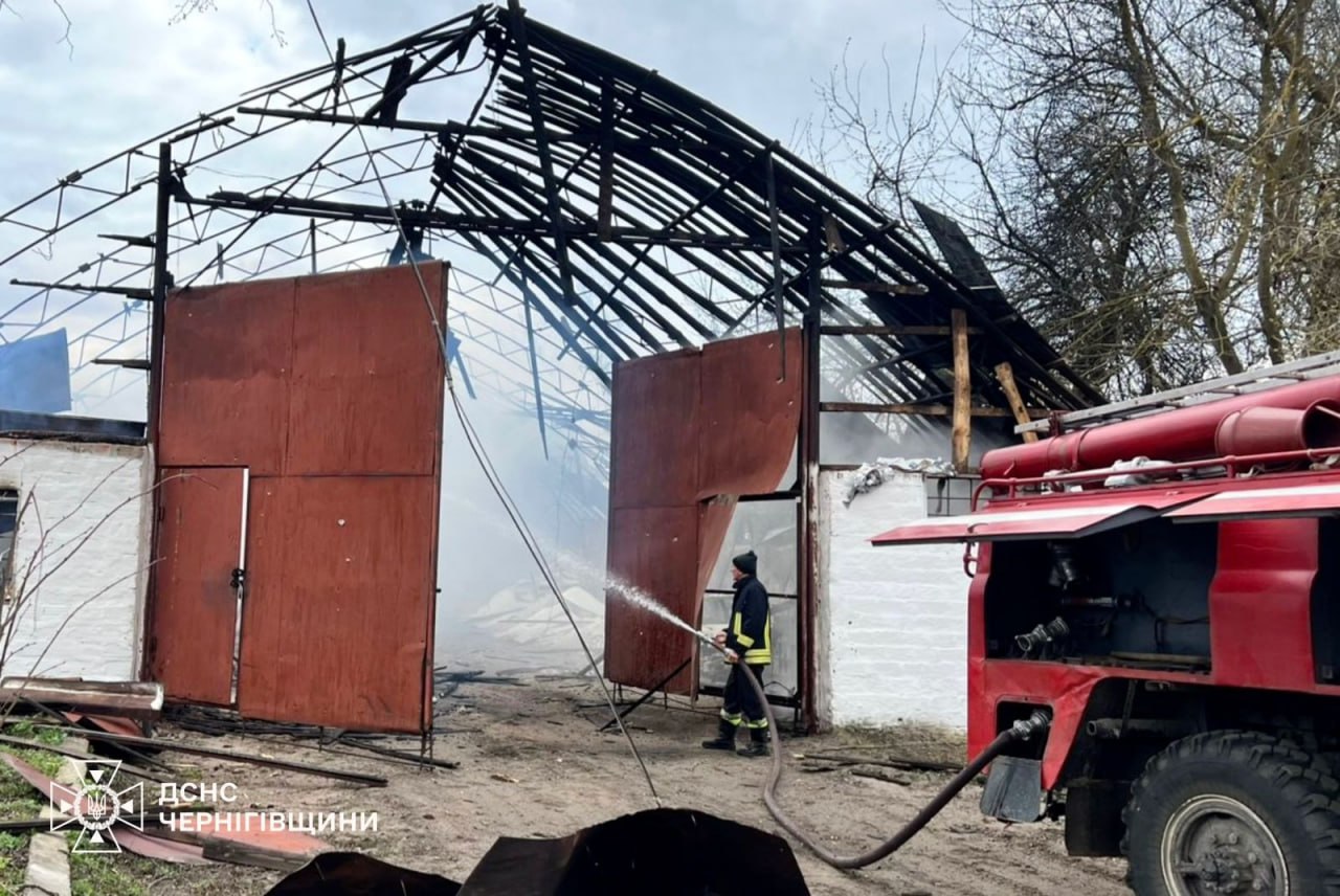Сьогодні пообіді у Новгород-Сіверському районі зафіксовано влучання БпЛА. Пошкоджено сільгосптехніку та будівлі, – повідомили у ДСНС.