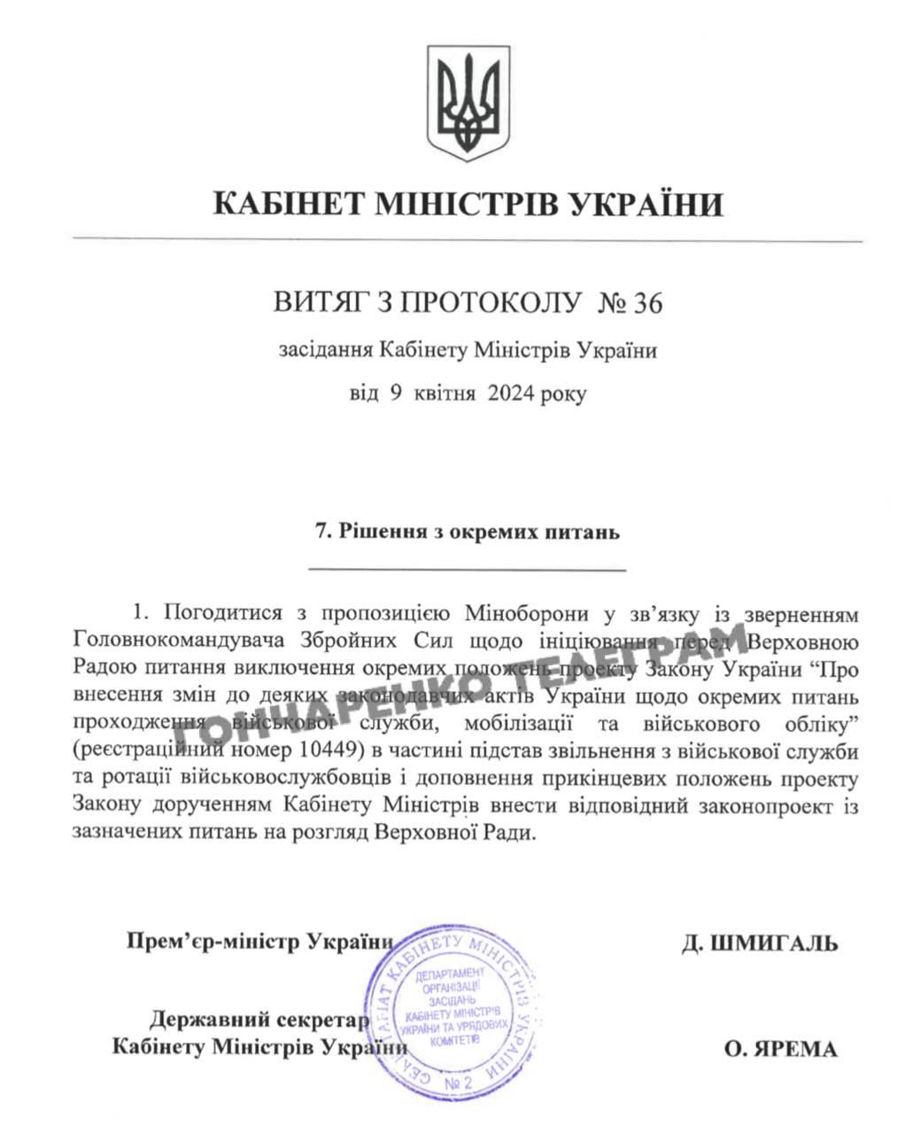 9 квітня Комітет Верховної Ради з питань нацбезпеки і оборони, ймовірно, ухвалив рішення про виключення положення щодо демобілізації та ротації військових з законопроєкту про мобілізацію.