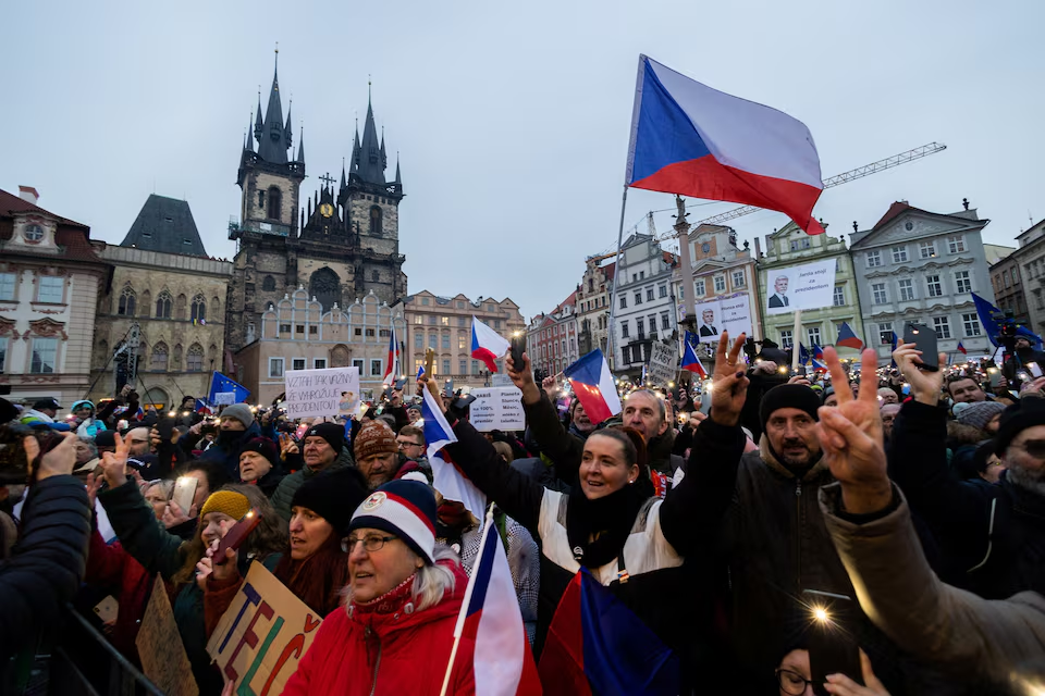 У неділю центр Праги заповнили десятки тисяч протестувальників, які висловили солідарність із президентом Петером Павелом. Глава держави вступив у відкритий конфлікт із урядом через відмову призначати міністра з радикальними поглядами.