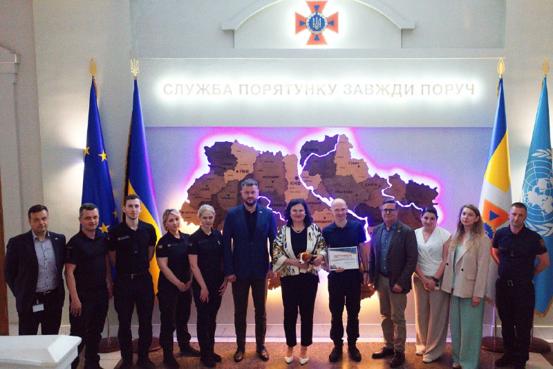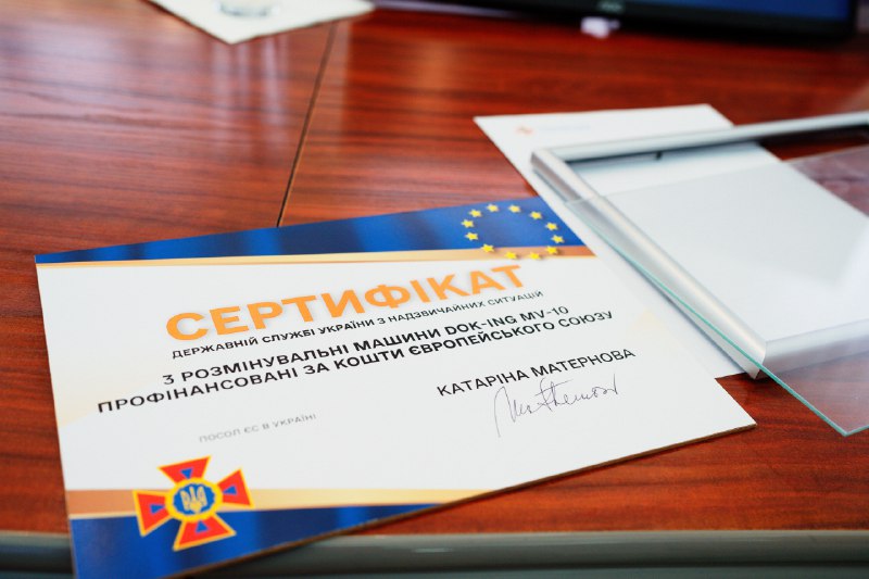 У середу, 29 травня, у стінах Державної служби надзвичайних ситуацій України відбулася офіційна передача амбасадоркою ЄС в Україні Катаріною Матерновою трьох систем розмінування DOK-ING MV-10 для оснащення новостворених піротехнічних підрозділів ДСНС України.