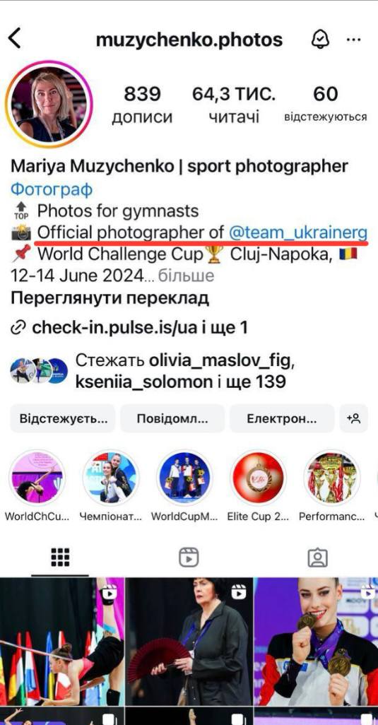 Згодом вона видалила допис, як і відредагувала шапку профілю в інстаграм, де прибрала інформацію про те, що є фотографинею Національної збірної команди з художньої гімнастики.