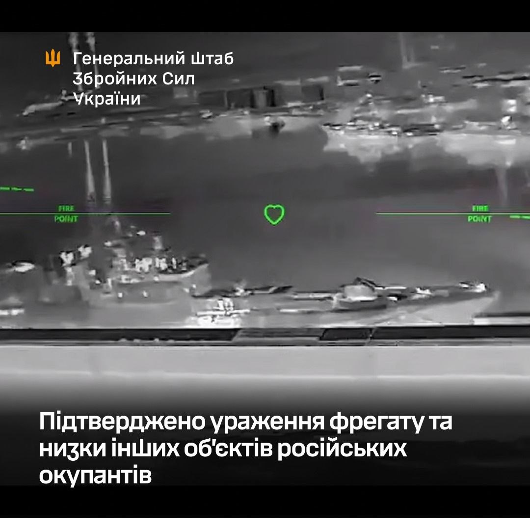 У Генеральному штабі ЗСУ підтвердили ураження фрегата та низки інших об’єктів російських окупантів.