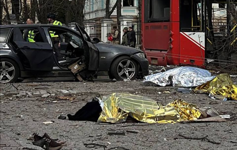 13 квітня російська армія ударила “Іскандерами” по центральній частині Сум. Одна з ракет влучила у будівлю Сумського державного університету. Також пошкоджений автобус, що проїжджав повз. Загинули 36 осіб. Серед них двоє дітей.