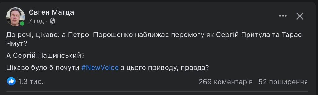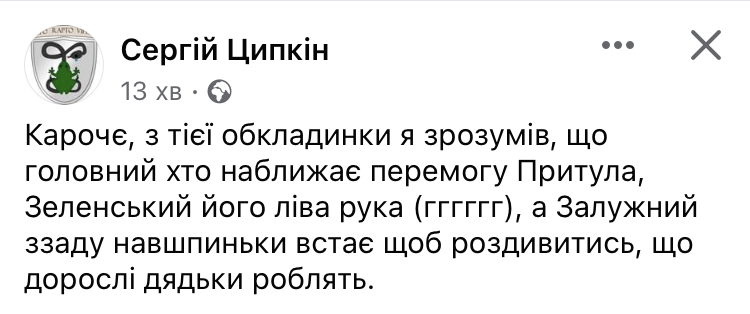 Ведучий та волонтер Сергій Притула також зреагував на обкладинку. Під постом журналістки Мирославі Гонгадзе він зазначив, що насамперед на обкладинках необхідно розмішувати фото українських військових.