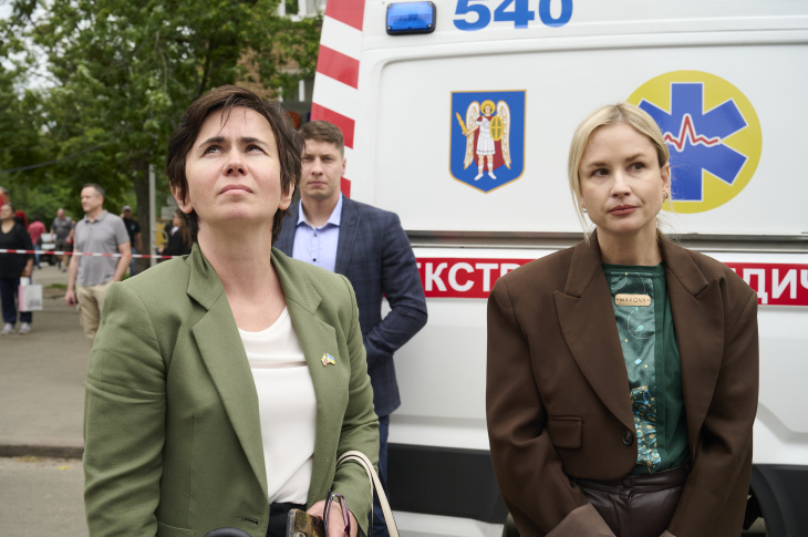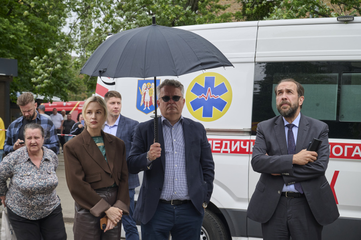 Іноземні дипломати відвідали місце ракетного удару у Києві (фото)