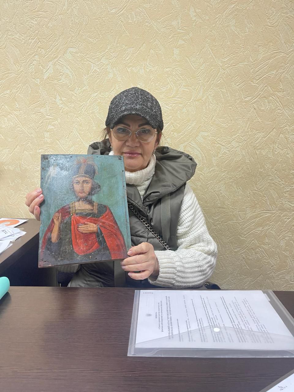 “Були часи, коли я привозила роботи в музей фурами, придатними для перевезення колекцій, дипломатичним транспортом. А зараз рада і вилученій на кордоні одній, але дуже цінній іконі, ймовірно XVIII ст., яку передало СБУ Полтави”, – поділилася своїми враженнями від процесу передачі директорка музею Аліна Доценко, яка особисто приймала ікону в Полтаві.