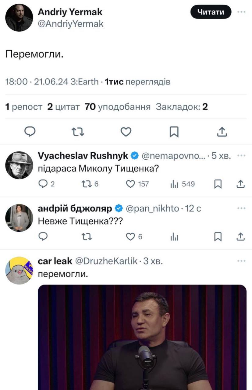 Вчора, 20 червня, у Дніпрі стався конфлікт між народним депутатом Миколою Тищенком, невідомими особами у формі та балаклавах і колишнім військовослужбовцем спецпідрозділу ГУР МОУ “KRAKEN”. В соцмережах відреагували на інцидент.