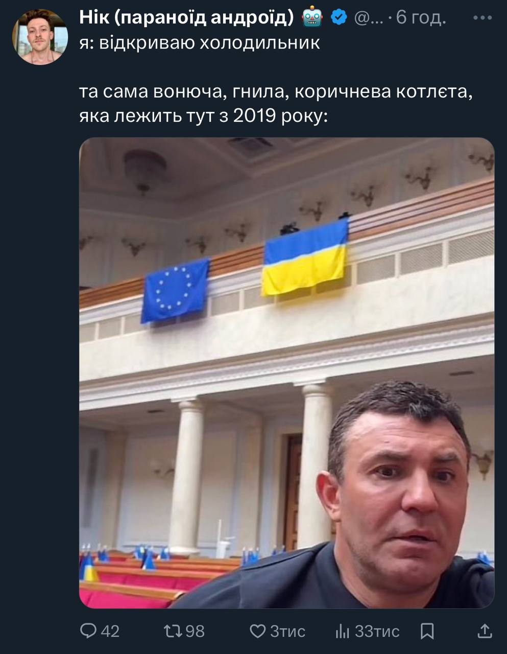 Сьогодні, 21 червня, нардеп Микола Тищенко прокоментував ситуацію і заявив, що “усіх, хто сидить на підкормі у шахраїв, одразу видно”.