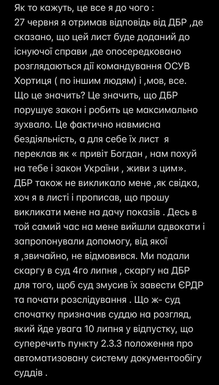 Своєю чергою, військовий вважає, що так ДБР порушує закон і, за його словами, “робить це максимально зухвало”. Він назвав відповідь ДБР “бездіяльністю”.