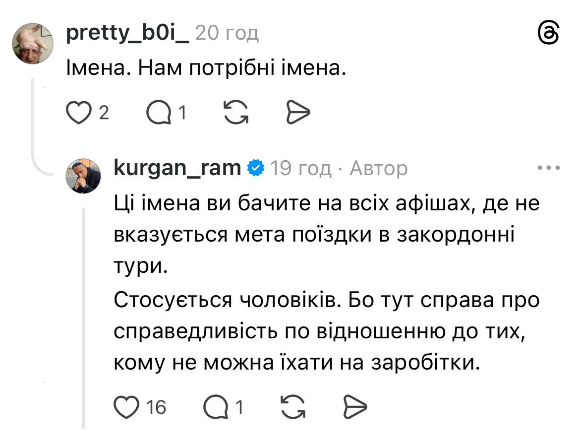 “Більшість артистів скоріш за все ненавидять нас за те шо ми говоримо правду, яка їм не вигідна. Але просто немає вже сил терпіти цю всю х*ню. Чому артистам чоловікам дозволяє совість їздити в закордонні тури і заробляти гроші на своє ах*нне життя? Чому такі ж чоловіки, як і ви, зі зброєю в руках захищають вас, ваших рідних, ваші домівки, поки ви дивитесь світ і збагачуєтесь”, – йдеться у дописі.