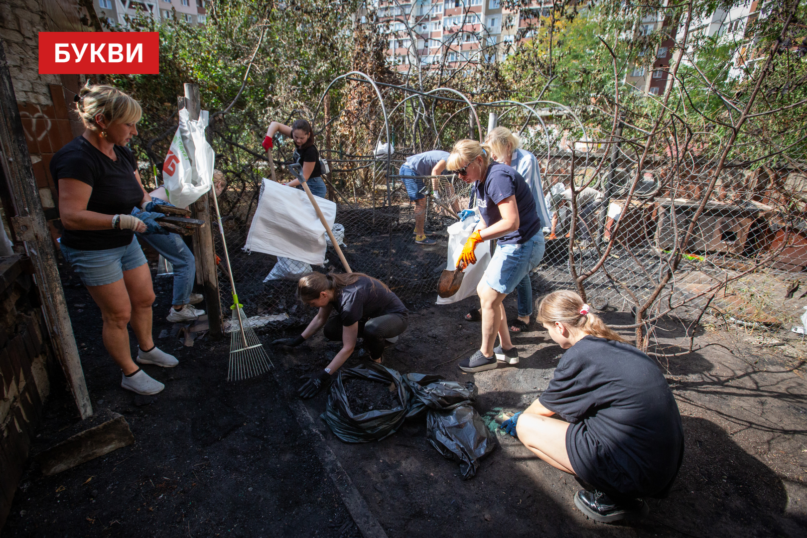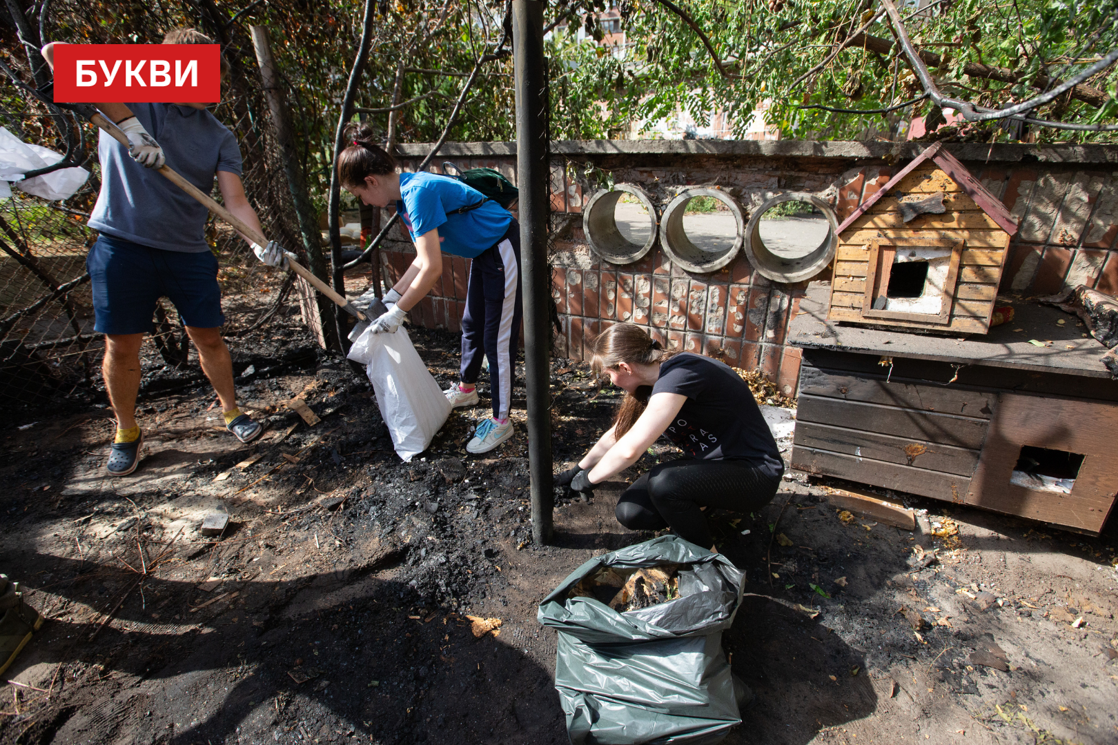 Кияни долучилися до прибирання території притулку для котів, у якому напередодні сталася пожежа – фоторепортаж