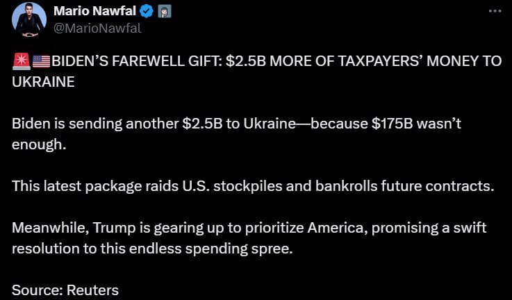 Зокрема так бізнесмен зреагував на пост ведучого Маріо Нафула, котрий написав: “Байден надсилає Україні ще 2,5 мільярда доларів – бо 175 мільярдів виявилося недостатньо. Тим часом Трамп готується визначити пріоритети для Америки, обіцяючи швидке вирішення цієї нескінченної хвилі витрат”.