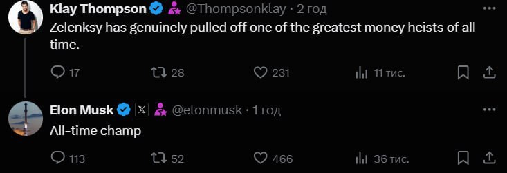 Спершу допис прокоментував юрист Клей Томпсон, зазначивши, що “Зеленський справді здійснив одне з найбільших грошових пограбувань усіх часів”.