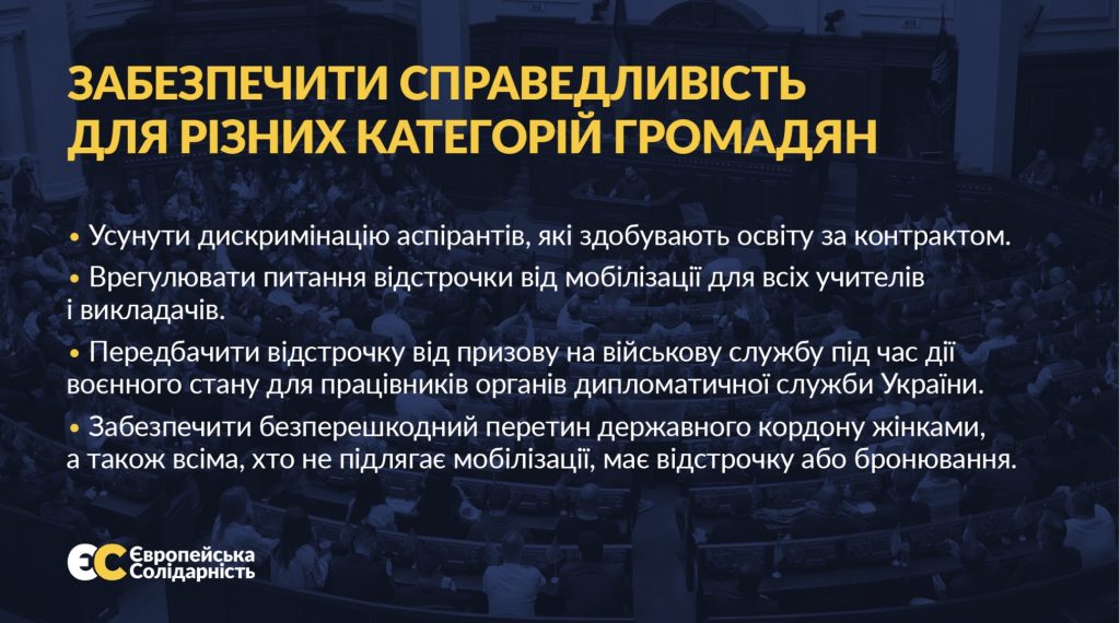 У фракції “Європейська Солідарність” озвучили позицію щодо закону про мобілізацію та окреслили основні принципи партії щодо цього питання.