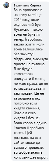 Інформація з відео та дописів містян свідчить про те, що жінка є ймовірною переселенкою з окупованої Луганщини.