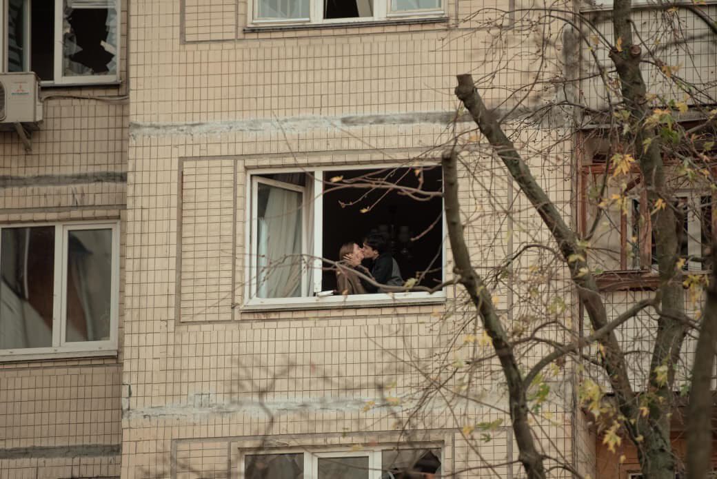 Мережею шириться фото пари, що цілується у пошкодженому після атаки РФ будинку у Києві