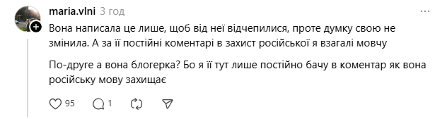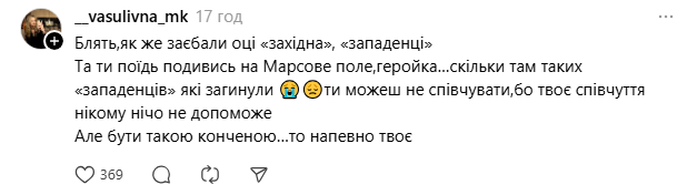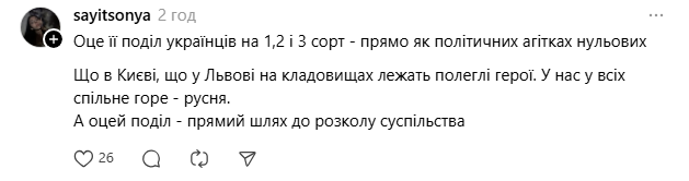 Пост викликав хвилю критики. Люди наголошували, що такі тези розділяють Україну, вказували на значну кількість загиблих захисників із заходу країни, а також згадували попередні публікації авторки.