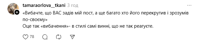 Зрештою користувачка видалила пости й перепросила. Попри це, багато юзерів Threads вважають вибачення нещирими.