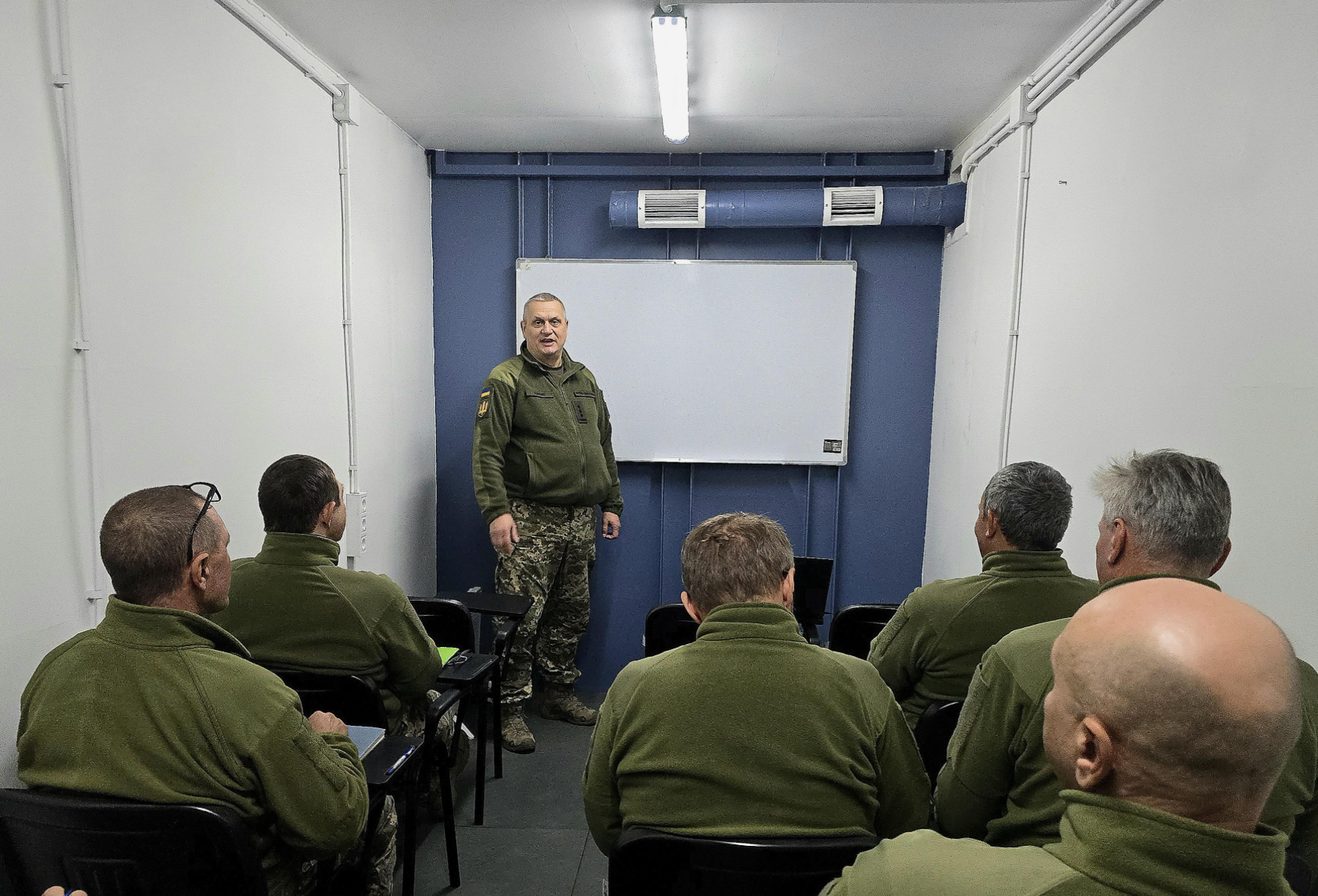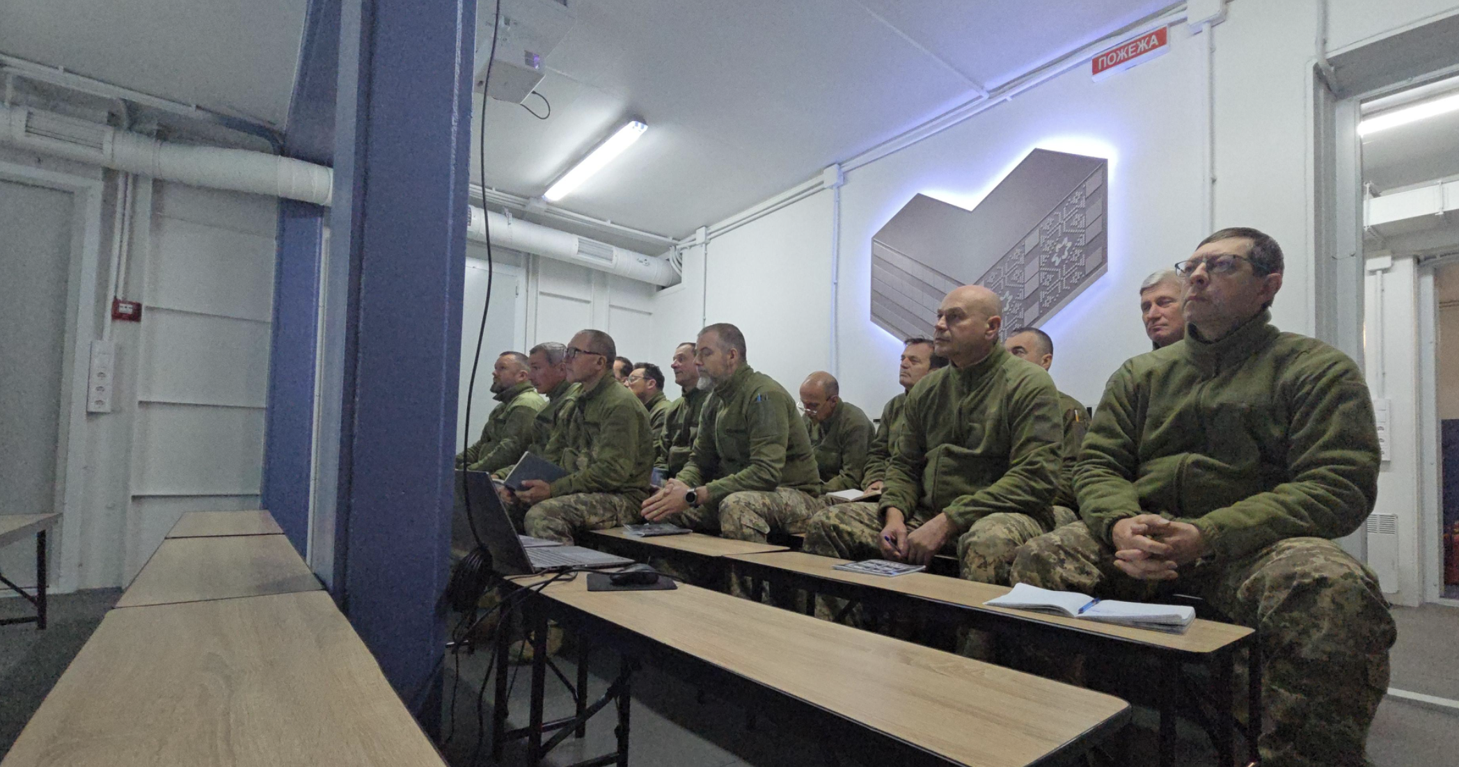 Ідея хабу належить академії, де потребували можливості не переривати навчання під час повітряних тривог. Понад 100 кв. м укриття з готових сталевих модулів змонтовано за два місяці. Воно відповідає нормам ДБН, захищає від уламків і дронів, вміщує 70 бійців на заняттях чи 150 – у кризі. Три зони для лекцій і такмеду, санвузли, п’ять виходів (включно з евакуаційним) – і все трансформується завдяки складаним меблям. Хаб стоїть окремо, з’єднаний сталевими переходами, – ідеальний баланс захисту й динаміки.