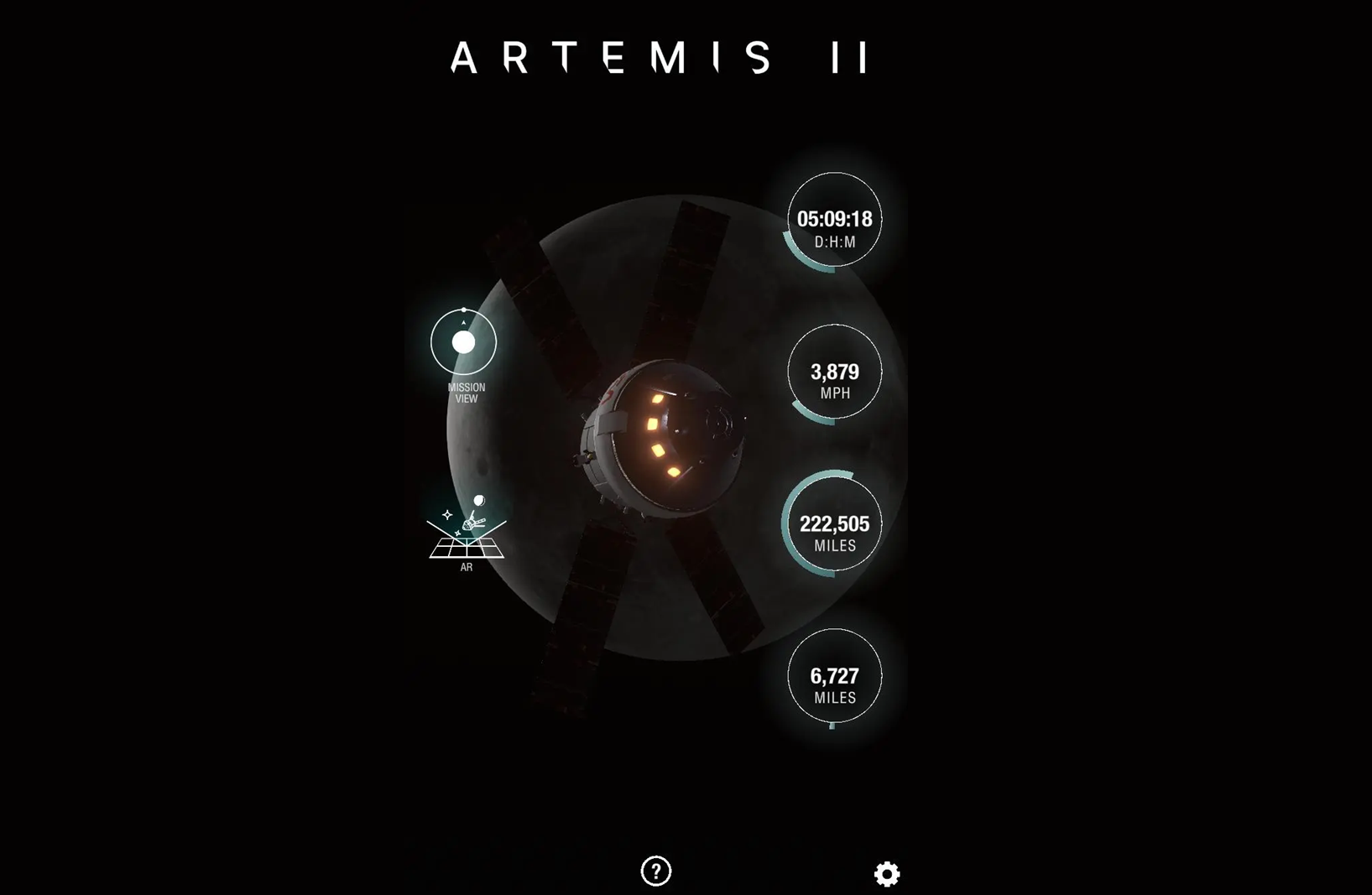 Особливістю мобільного додатка NASA стане інтеграція доповненої реальності. Користувачі зможуть навести смартфон на небо, а вбудовані вказівники покажуть, де саме в цей момент перебуває Orion відносно їхнього місця проживання. Окрім поточних даних, сервіс дозволить побачити ключові точки маршруту та історичні місця висадки програми Apollo.