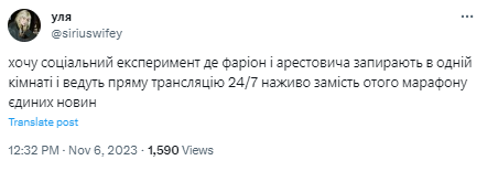 Окрім цього, на закиди Фаріон також відповів екскомандир полку “Азов”, майор ЗСУ, заступник командира 3 окремої штурмової бригади Максим Жорін. Зокрема військовий зробив перший пост російською мовою на Telegram-каналі з особистим повідомлення для Фаріон та закликав правоохоронні органи звернути увагу на діяльність мовознавиці, котра “розколює українське суспільство за ФСБшними методичками”.