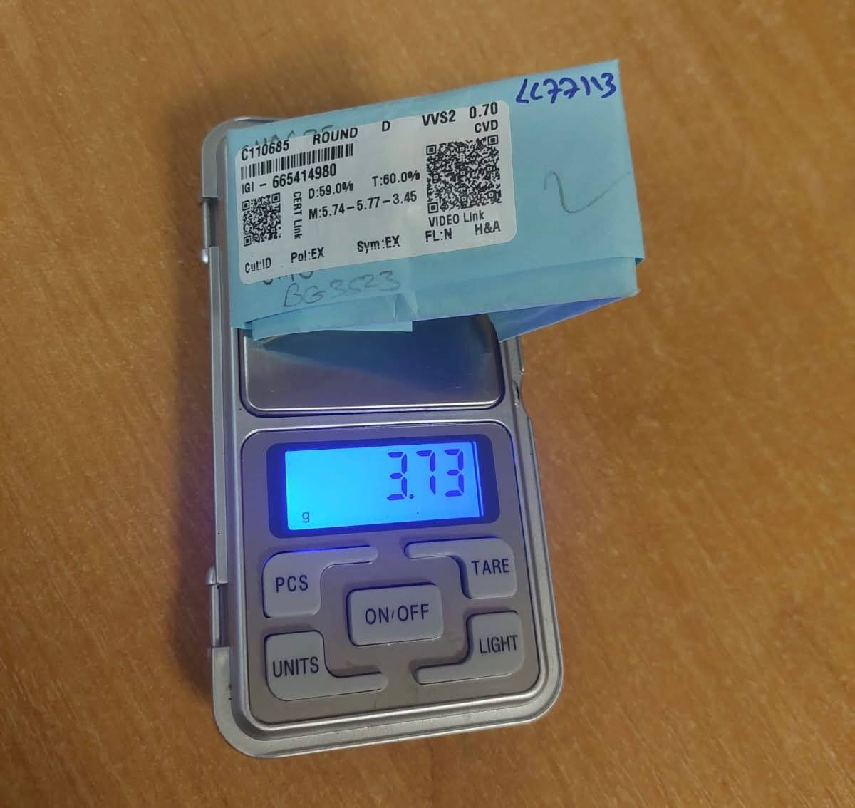 У згортку містилися 21 паперовий, 17 зіп-пакетиків та пластиковий футляр з камінцями. Загальна вага вилученого за протоколом про порушення митних правил товару склала 191 грам. В упакуванні також була інформація з маркуванням про прозорість/чистоту, розміри, якість огранки та навіть QR-коди з посиланням на авторитетне джерело Гемологічного інституту у США, що видає сертифікати якості міжнародного зразка на діаманти, – додали у пресслужбі.