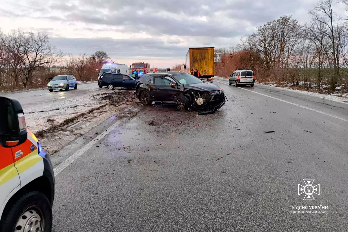 На Дніпропетровщині сталася масштабна ДТП за участю шести транспортних засобів