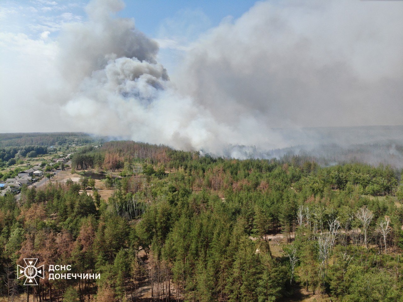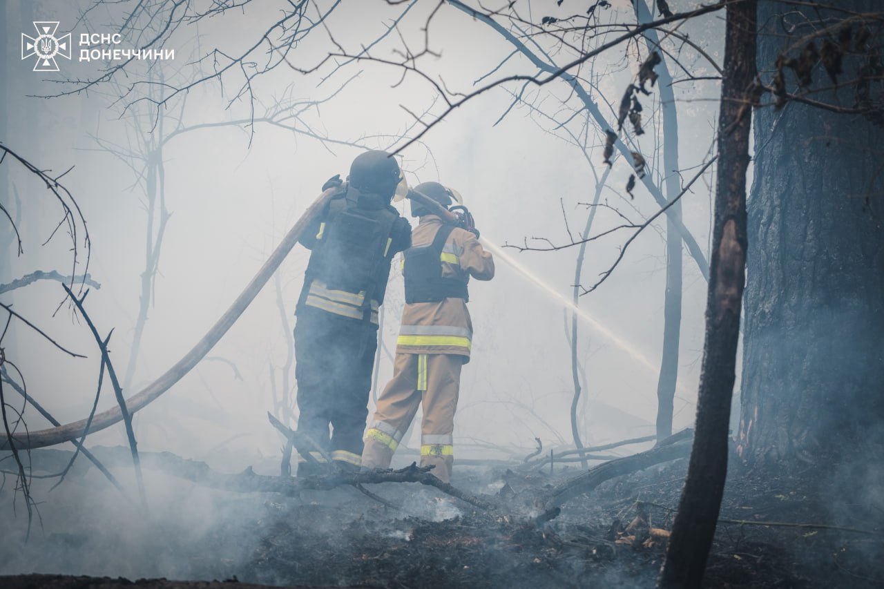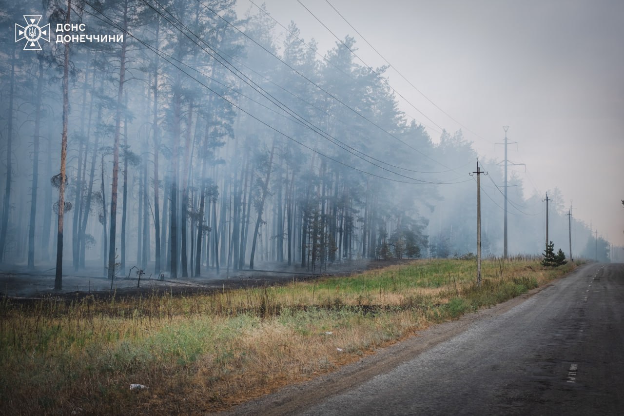Тоді як на Донеччині четверту добу триває ліквідація масштабної лісової пожежі, котра виникла внаслідок авіаудару. Вогонь пройшов близько 5 тис. га: пошкоджено будівлі на території 46 домоволодінь, вісім автомобілів, евакуйовано троє осіб.